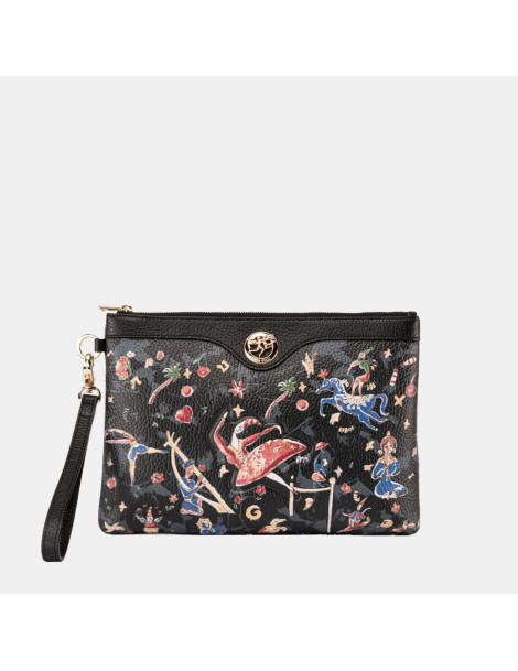 - L056G1092_01 made of calf leather with Magic Circus "Formidable" placed print and hot stamped Dancing Girl pattern